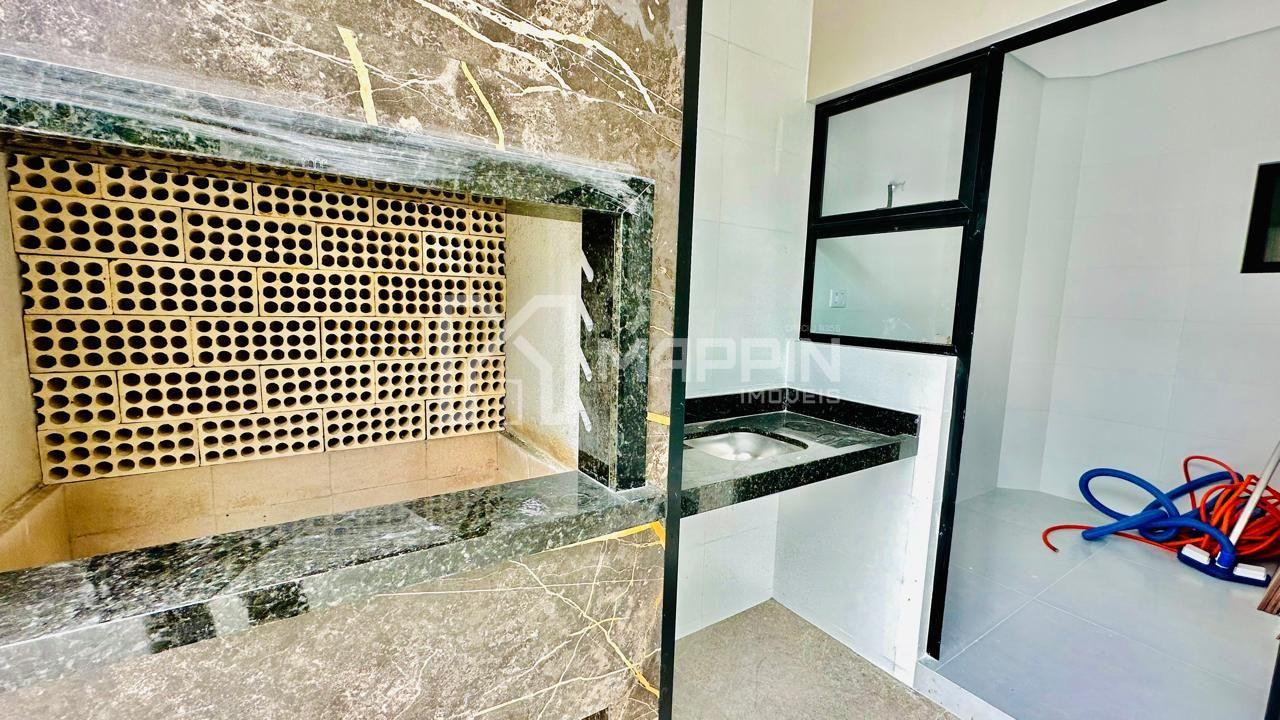 A cozinha é espaçosa para facilitar a organização. Há ainda uma lavanderia ampla e uma churrasqueira, ideal para reuniões ao ar livre, com uma linda e ampla piscina.